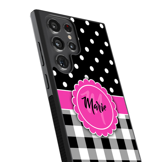 Black Polka Dot Black Plaid Personalized Samsung Phone Case
