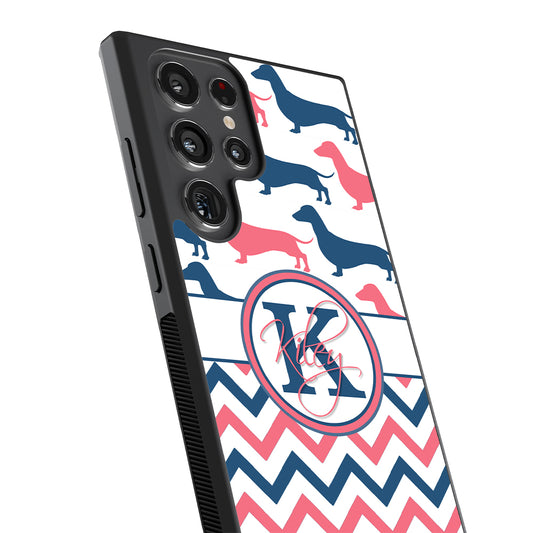 Dachshund Pink and Blue Chevron Personalized Samsung Phone Case