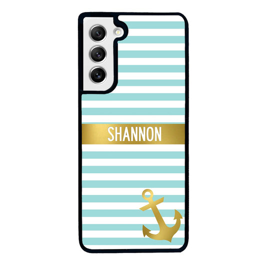 Teal White Bars Anchor Personalized Samsung Phone Case