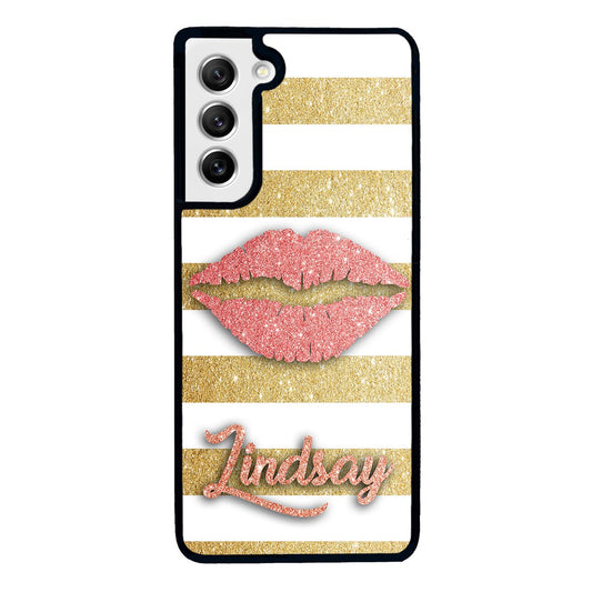 Red Glitter Lips Gold Bars Personalized Samsung Phone Case