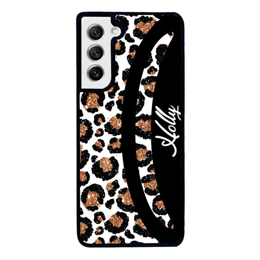Gold Glitter Leopard Curvy Personalized Samsung Phone Case