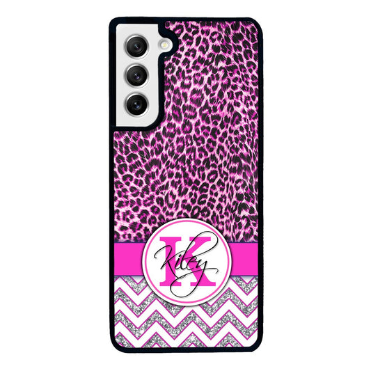 Pink Leopard Silver Glitter Personalized Samsung Phone Case