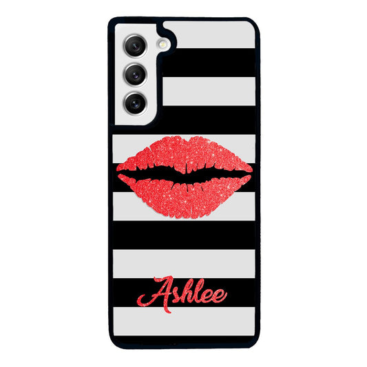 Black White Bars Red Lips Personalized Samsung Phone Case