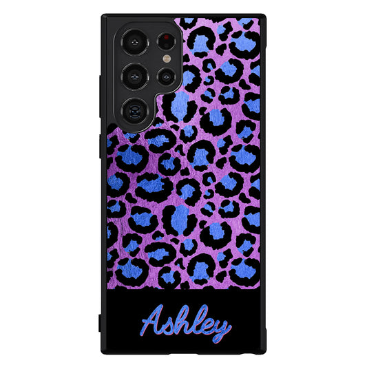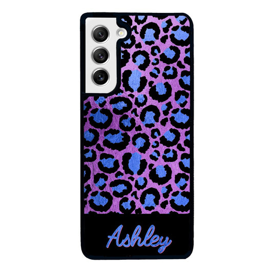Leopard Skin Purple and Blue Gold Foil Personalized Samsung Phone Case