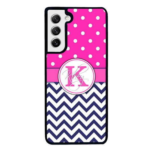 Pink Polka Dots Blue Chevron Personalized Samsung Phone Case