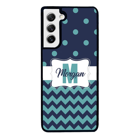Teal Dark Blue Polka Dot Chevron Personalized Samsung Phone Case