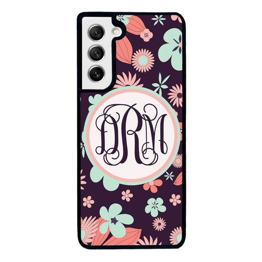 Vintage Pretty Flower Bars Monogram Samsung Phone Case