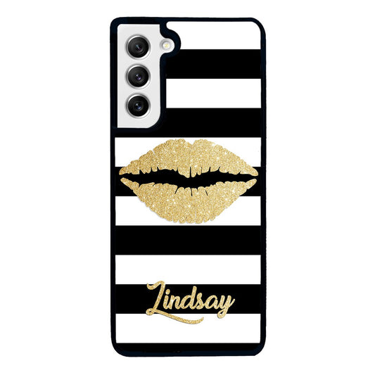Black White Bars Gold Lips Personalized Samsung Phone Case