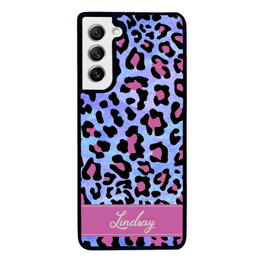 Pink and Blue Leopard Skin Personalized Samsung Phone Case
