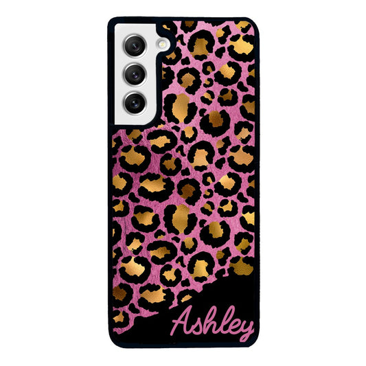Leopard Skin Pink and Gold Foil Personalized Samsung Phone Case