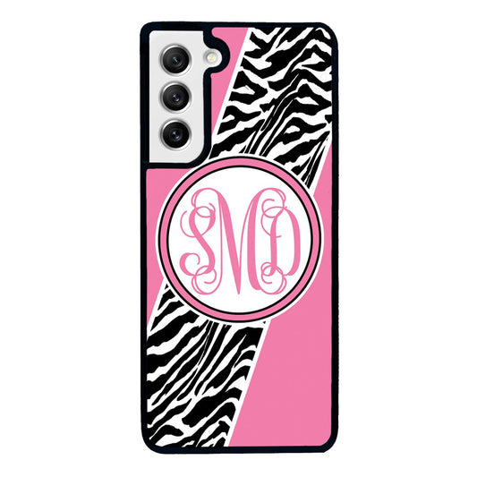 Zebra Animal Skin Pink Script Monogram Samsung Phone Case