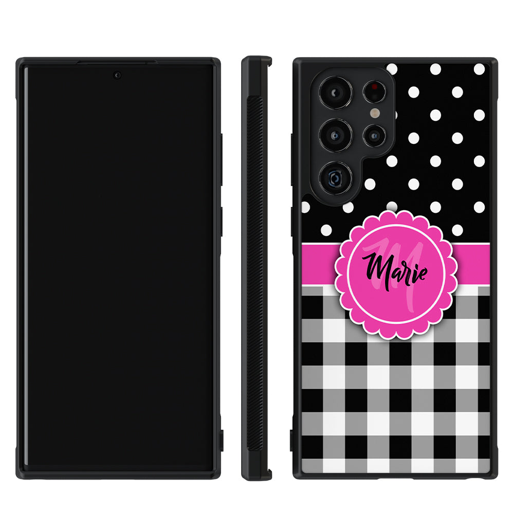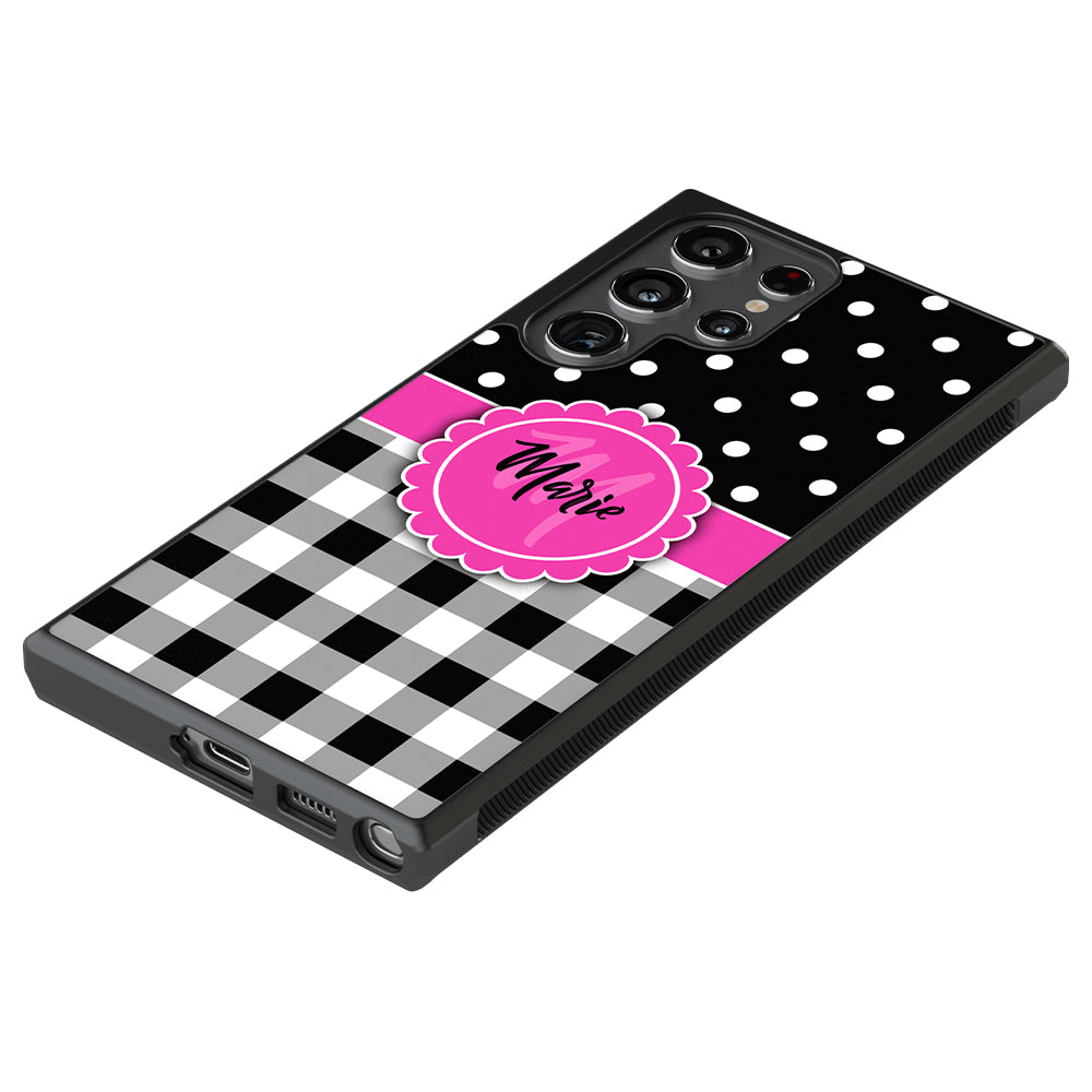 Black Polka Dot Black Plaid Personalized Samsung Phone Case