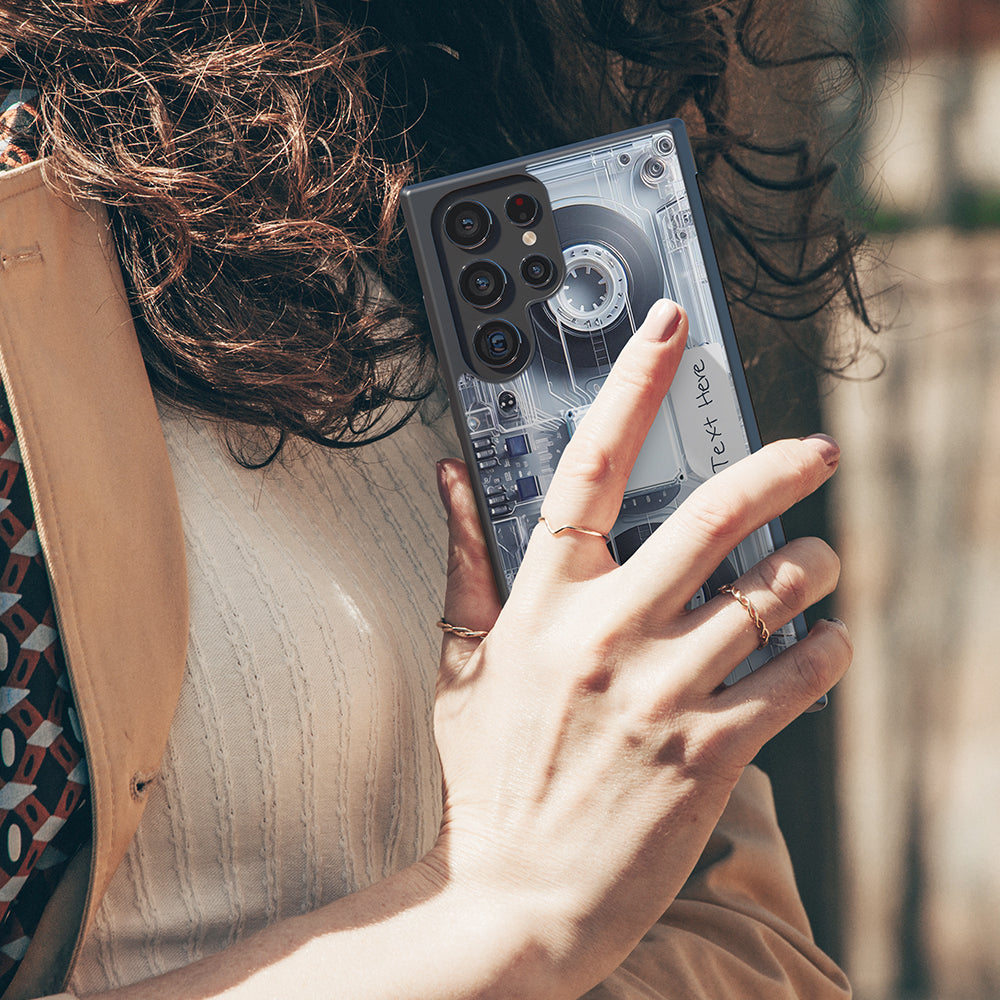 Experience the best of both worlds with our one-of-a-kind personalized retro cassette tape Samsung phone case. Immerse yourself in the perfect blend of nostalgia and futuristic design.