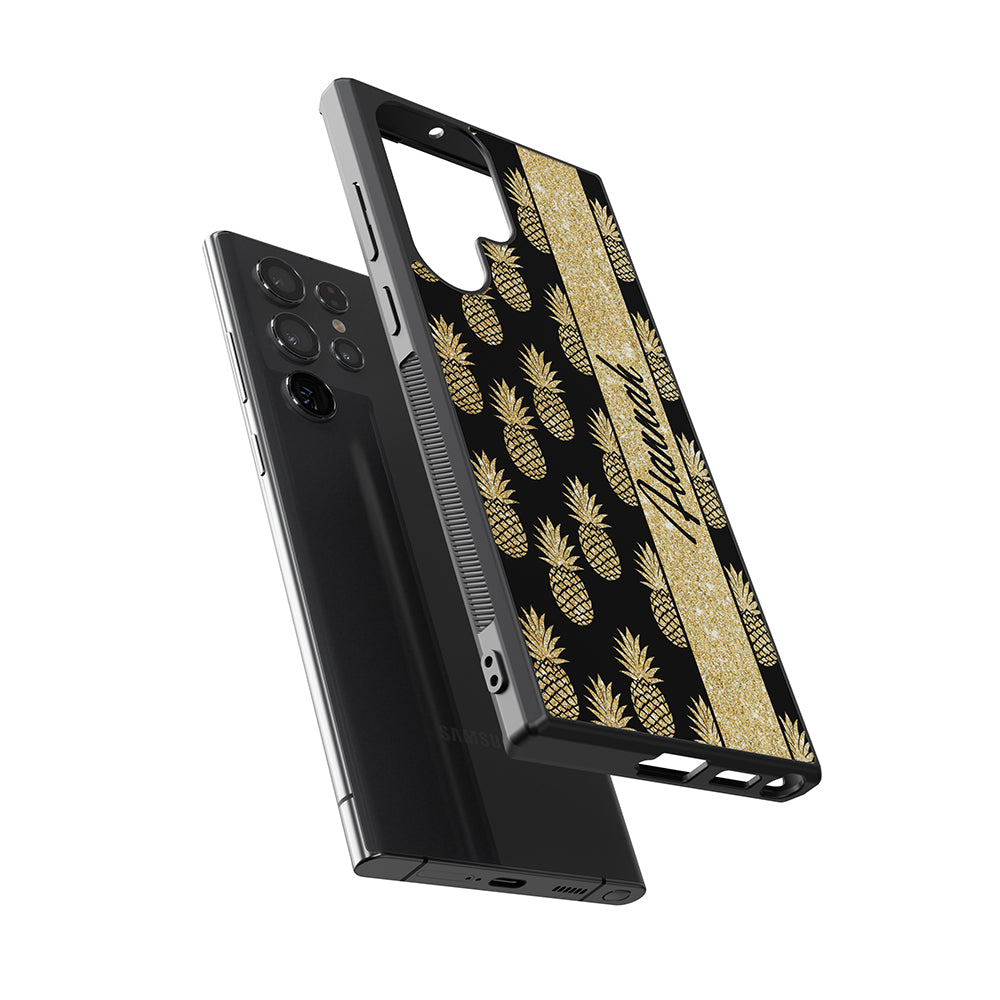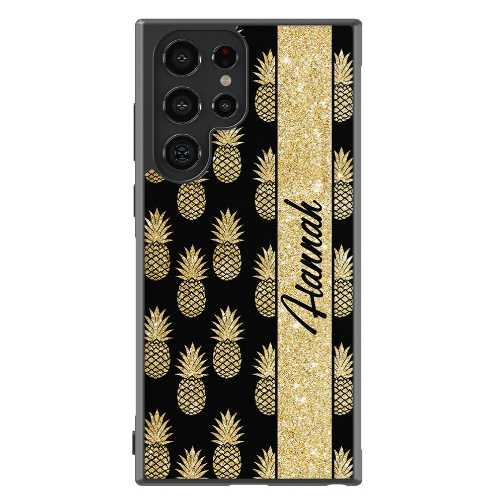 Golden Gold Glittery Glowing Pineapples, everyone's favorite fruit, immortalized in a beautiful pattern and brought together with your personalization.
