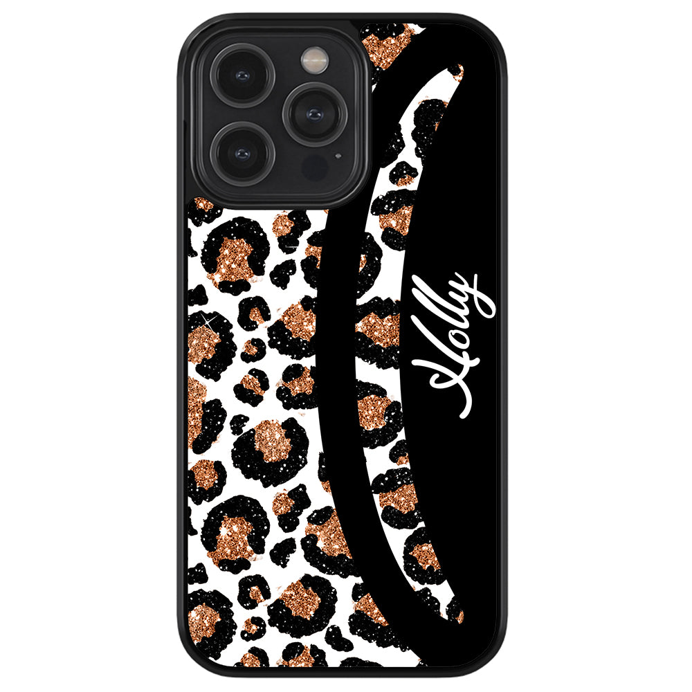 Leopard Moon Curve White and Gold Personalized Apple iPhone Case