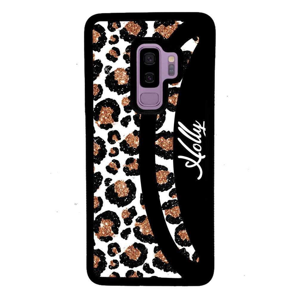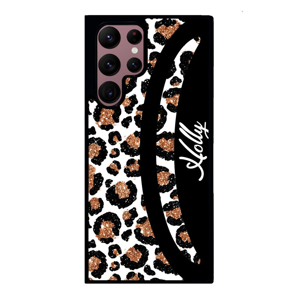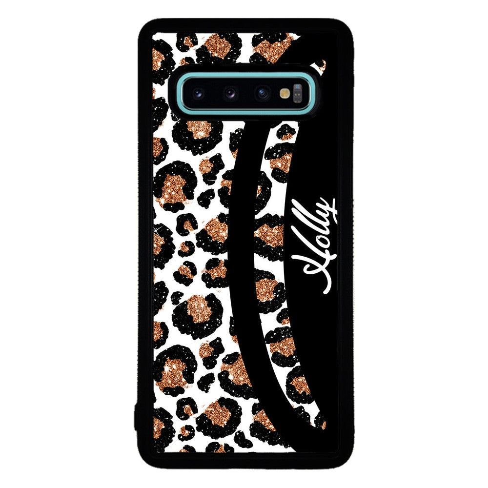 Leopard Moon Curve White and Gold Personalized Samsung Phone Case