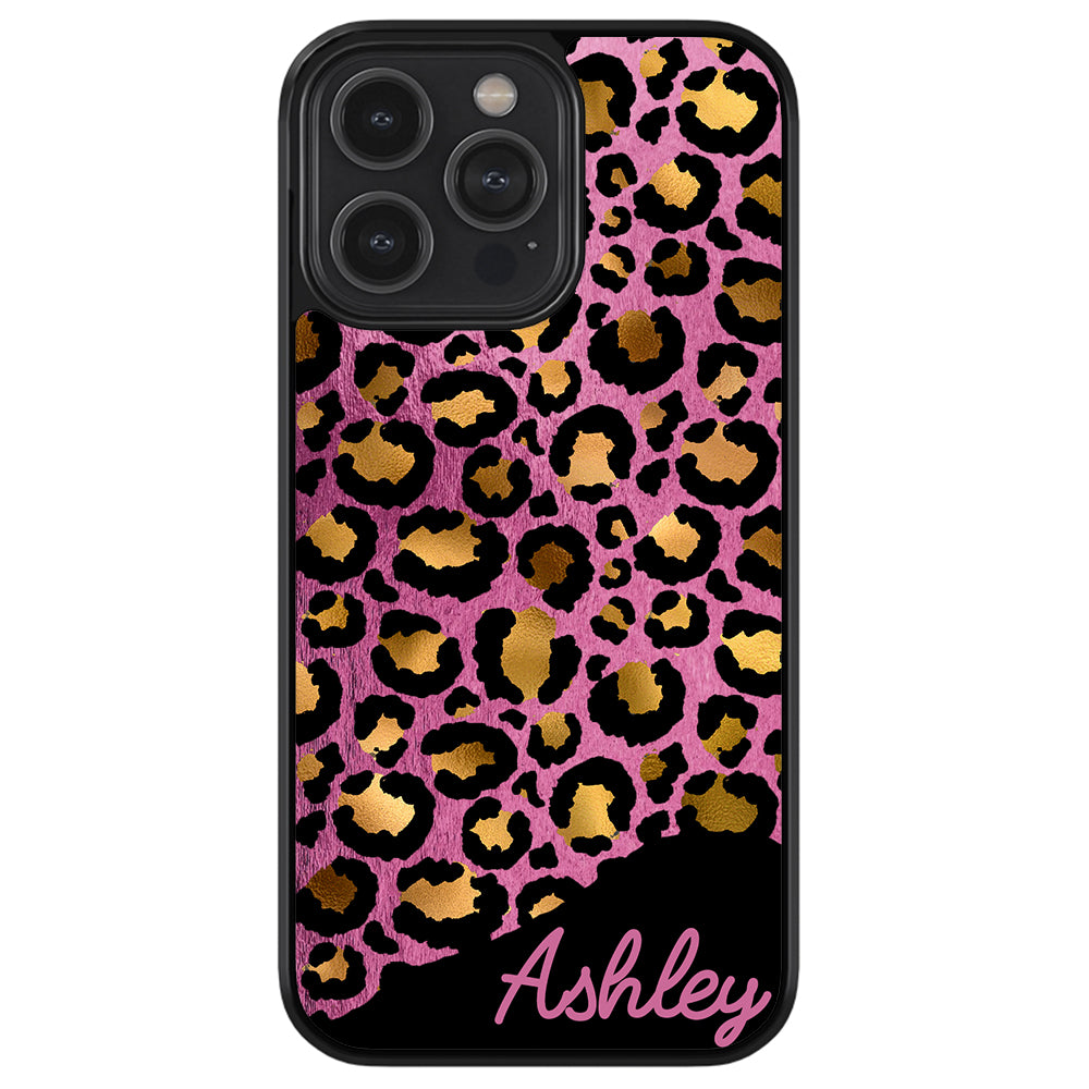 Leopard Skin Pink and Gold Foil Personalized Apple iPhone Case