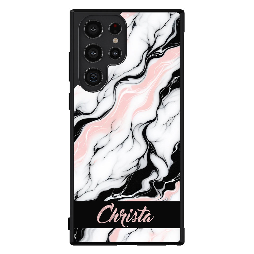 Elevate your Samsung Galaxy with our chic pink, black, and white marble pattern phone case, a perfect fusion of modern sophistication and personalized style. This eye-catching case features a striking marble design, with swirling shades of pink, black, and white, creating a timeless and elegant look. Made from premium materials, it provides robust protection against everyday wear and tear while maintaining a sleek profile. What sets this phone case apart is the option to personalize it with your name. Expertly integrated into the marble pattern, your name adds a unique and stylish touch, making your phone truly one-of-a-kind. Ideal for personal use or as a thoughtful gift, this personalized marble pattern phone case combines fashion and function effortlessly. Keep your iPhone protected and on-trend with a case that reflects your individual style.
