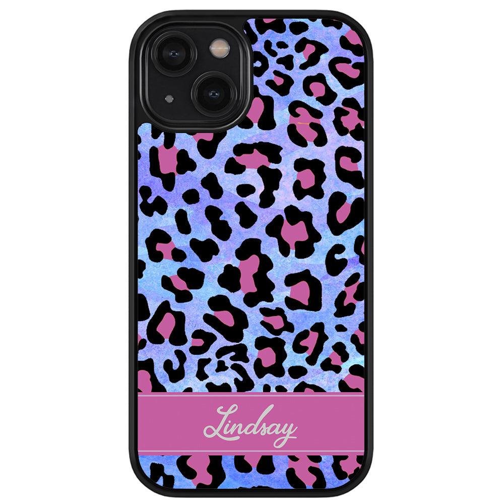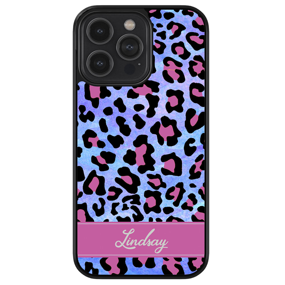 Pink and Blue Leopard Skin Personalized Apple iPhone Case