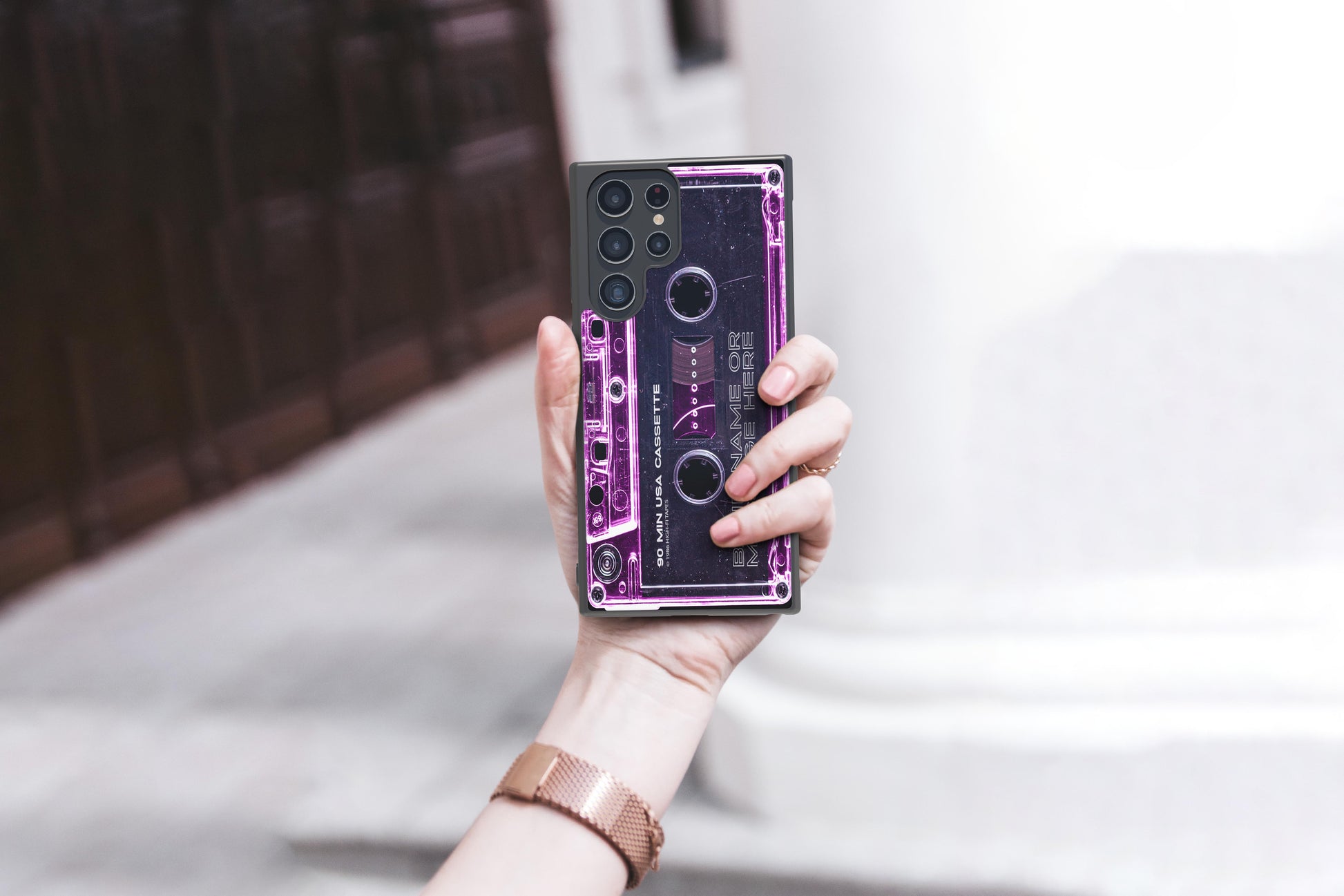 Do you love 80s nostalgia? This radical phone case is the perfect way to show your style 'till the tape runs out. Featuring a clear pink cassette tape design, you can customize it with your fave band or personalized message. Say goodbye to dull phone cases and get in the groove with this totally tubular Samsung rubber protective phone case! 🎵