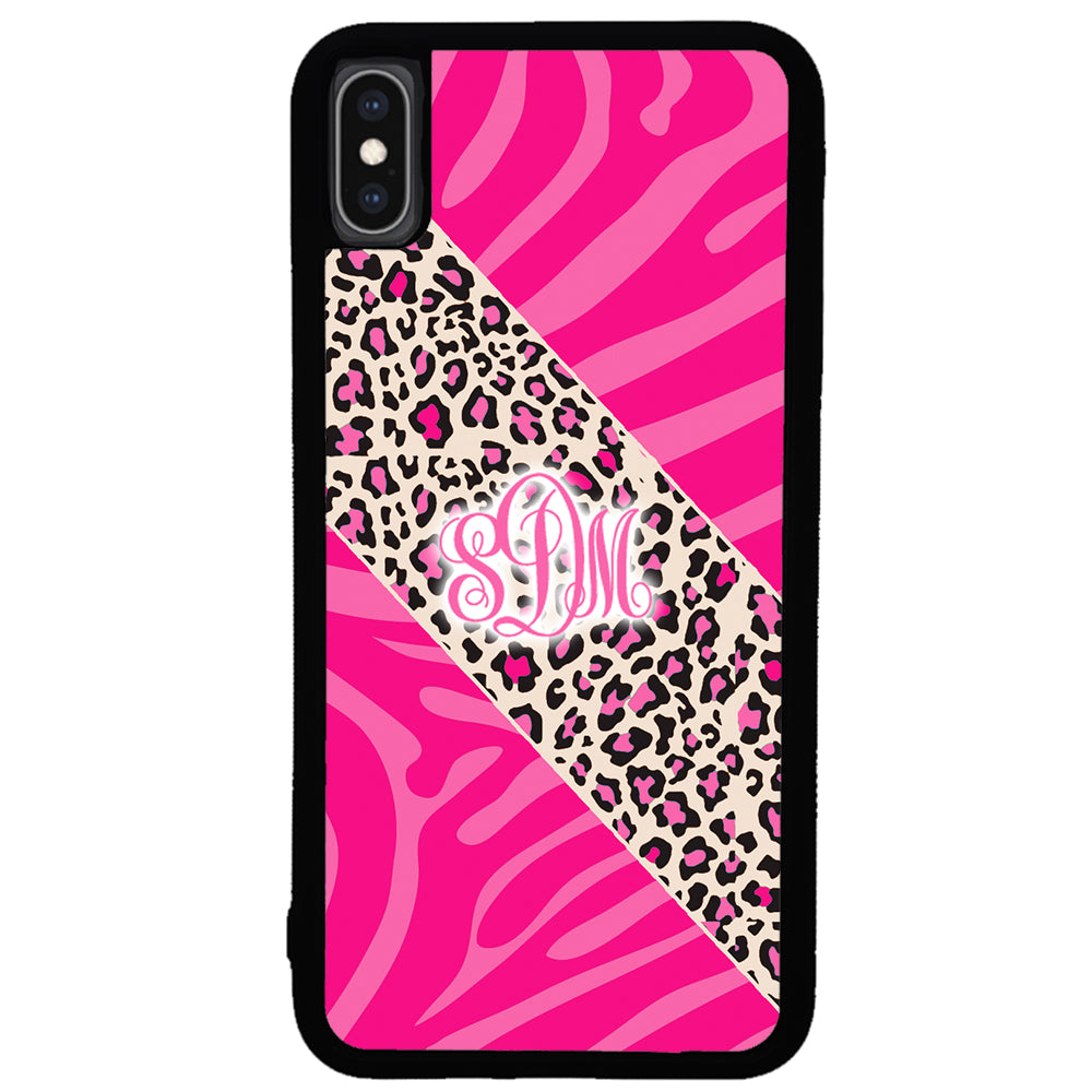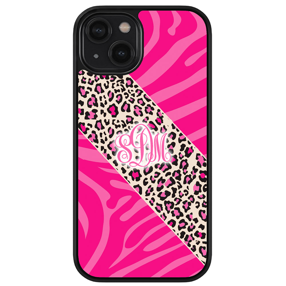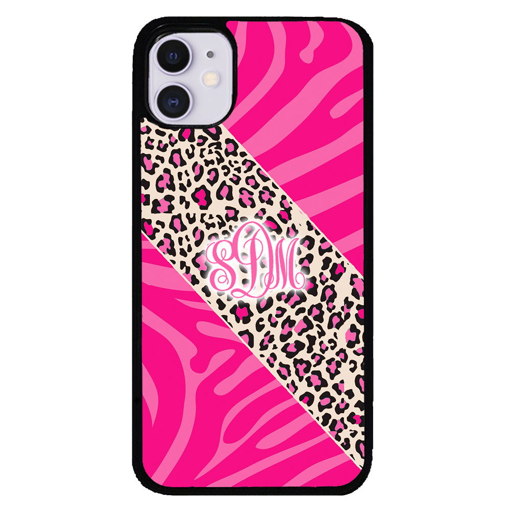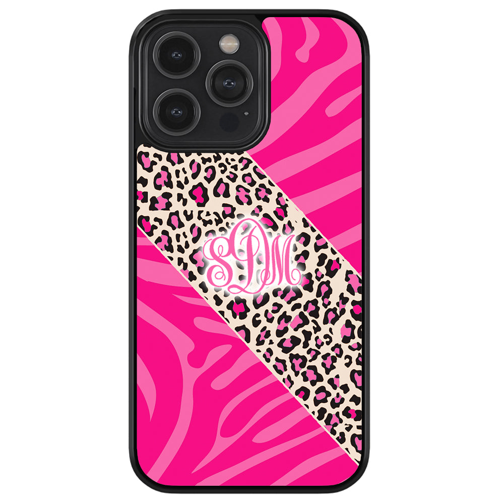 Pink Leopard and Zebra Animal Skin Monogram Apple iPhone Case