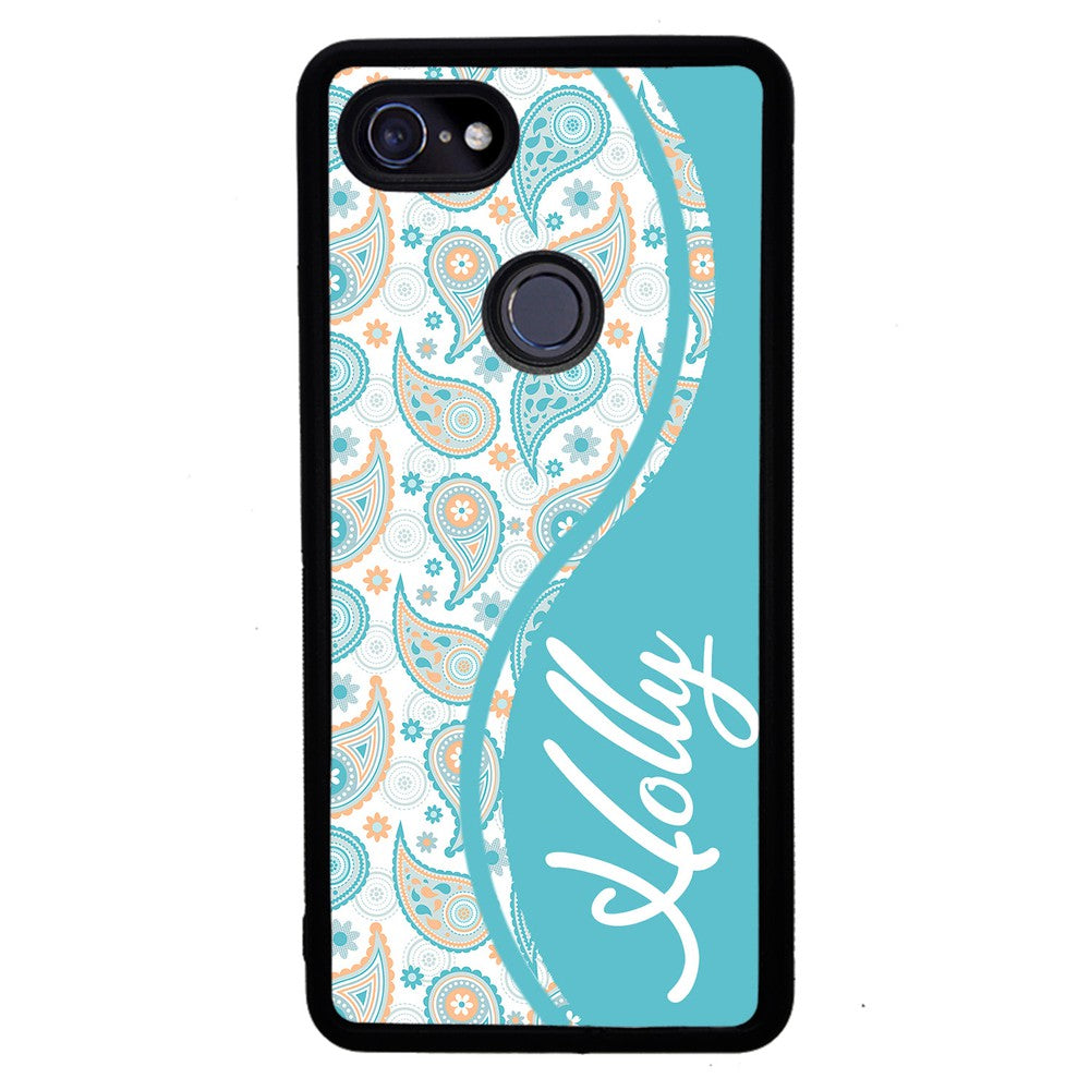 Teal Blue and Orange Paisley Personalized Google Phone Case