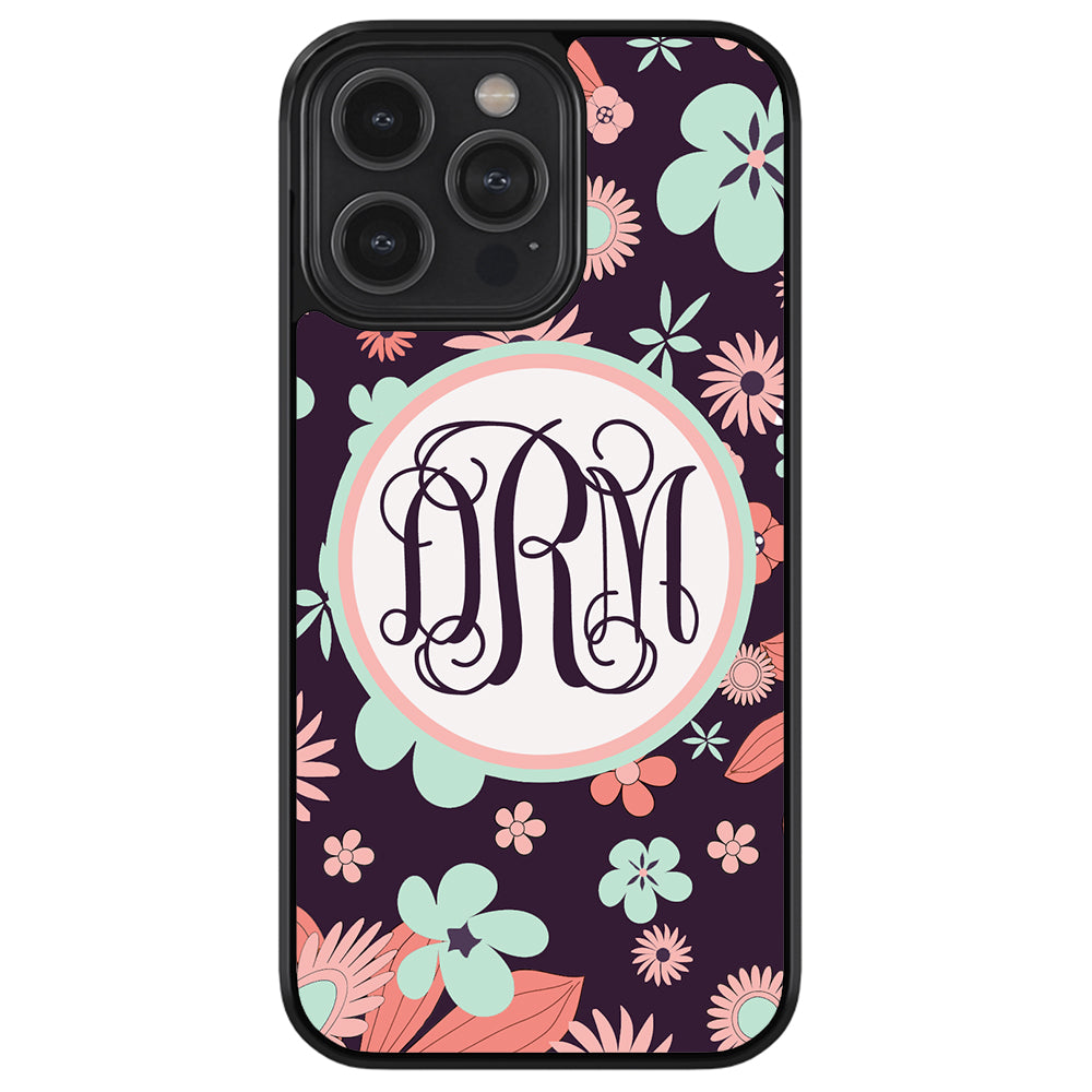 Vintage Flowers Purple Script Monogram Apple iPhone Case