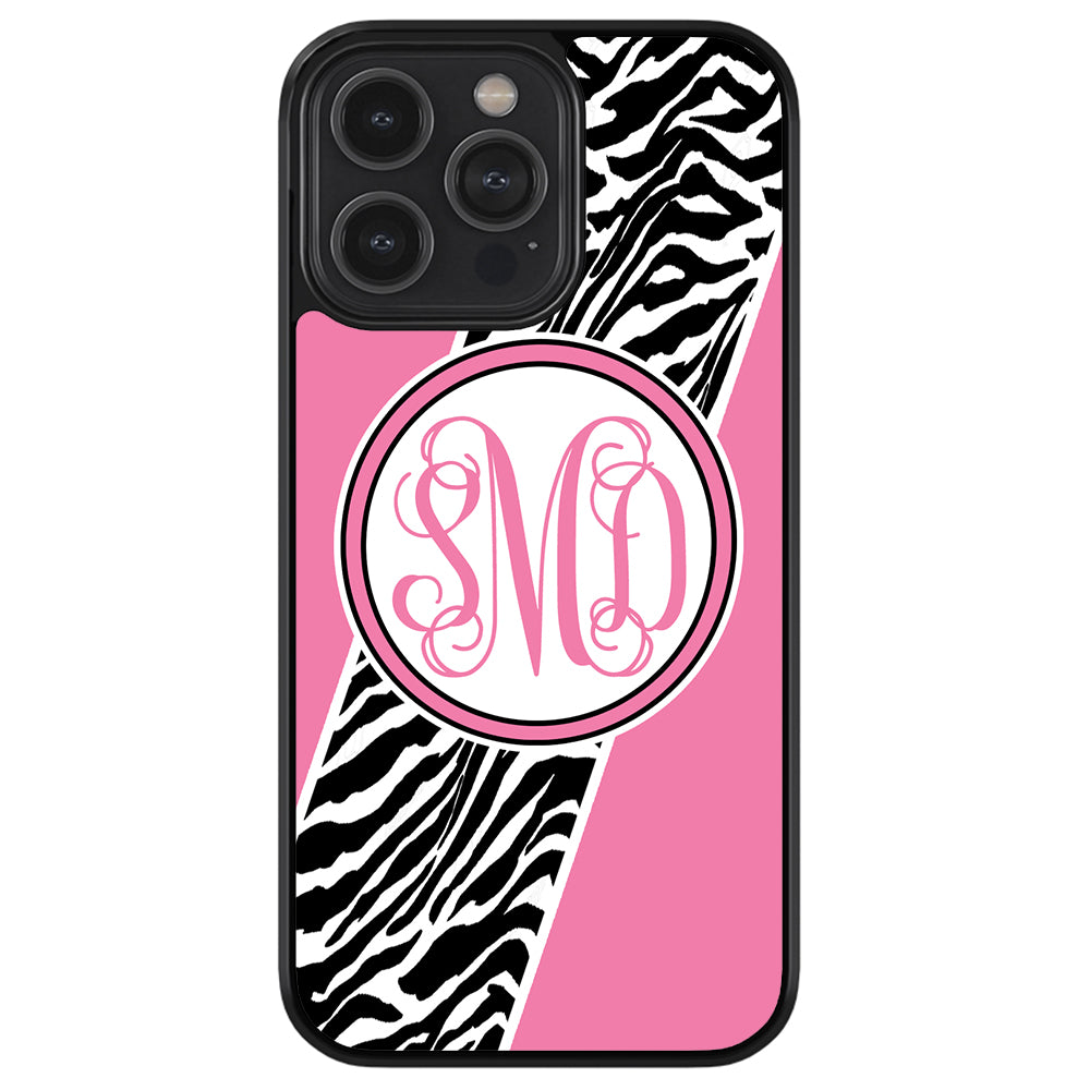 Zebra Animal Skin Pink Script Monogram Apple iPhone Case